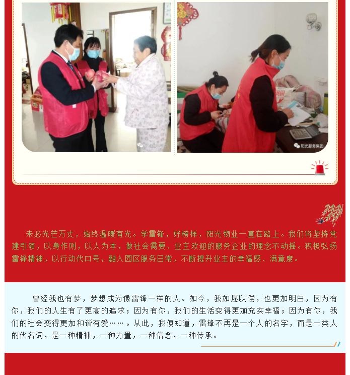 愛的傳承 | 陽(yáng)光物業(yè)黨支部組織開展“雷鋒精神永流傳 學(xué)習(xí)雷鋒好榜樣”特別活動(dòng)
