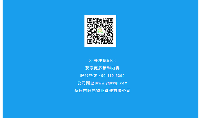陽(yáng)光物業(yè)成立于2003年5月,專注物業(yè)服務(wù)行業(yè)20余載,陽(yáng)光物業(yè)現(xiàn)為河南省物業(yè)管理協(xié)會(huì)副會(huì)長(zhǎng)單位、商丘市物業(yè)管理協(xié)會(huì)副會(huì)長(zhǎng)單位,公司注冊(cè)資金1020萬(wàn)元,陽(yáng)光物業(yè)連續(xù)多年被河南省及商丘市評(píng)為先進(jìn)企業(yè)、優(yōu)秀企業(yè)。