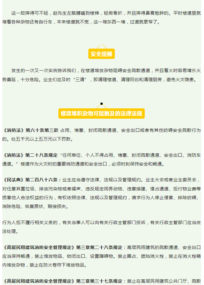 法律宣傳 | 關(guān)于小區(qū)樓道堆放雜物的安全隱患及法律責(zé)任