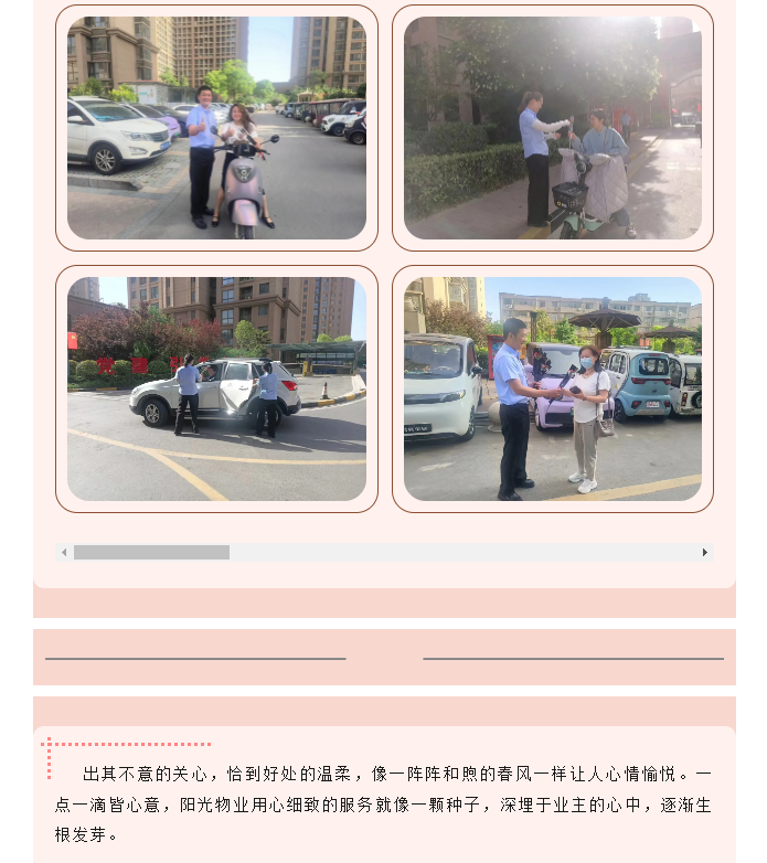 陽(yáng)光物業(yè)成立于2003年5月,專注物業(yè)服務(wù)行業(yè)20余載,陽(yáng)光物業(yè)現(xiàn)為河南省物業(yè)管理協(xié)會(huì)副會(huì)長(zhǎng)單位、商丘市物業(yè)管理協(xié)會(huì)副會(huì)長(zhǎng)單位,公司注冊(cè)資金1020萬(wàn)元,陽(yáng)光物業(yè)連續(xù)多年被河南省及商丘市評(píng)為先進(jìn)企業(yè)、優(yōu)秀企業(yè)。