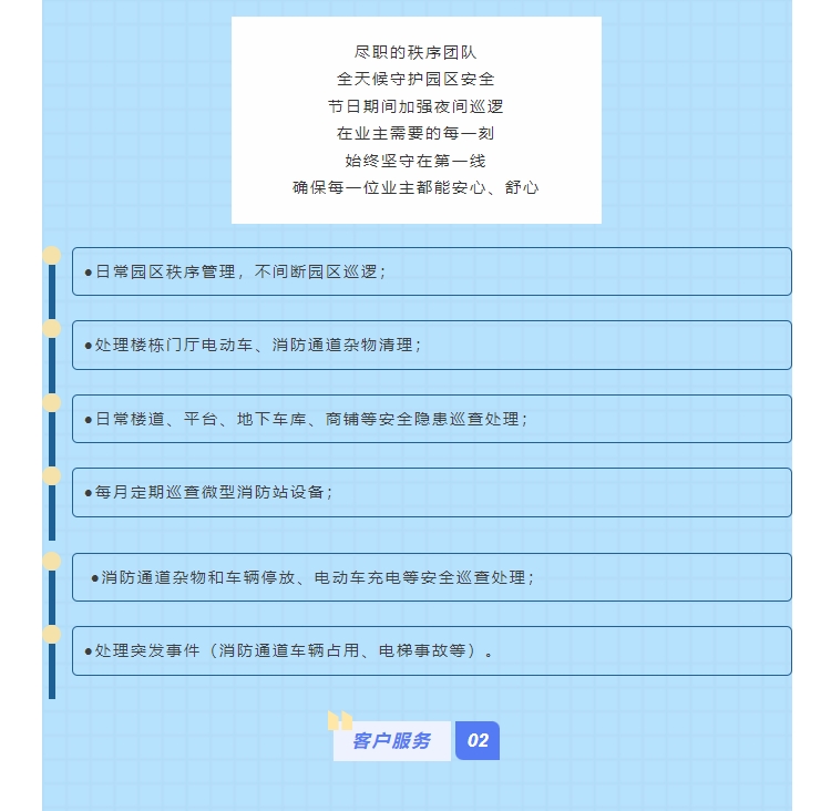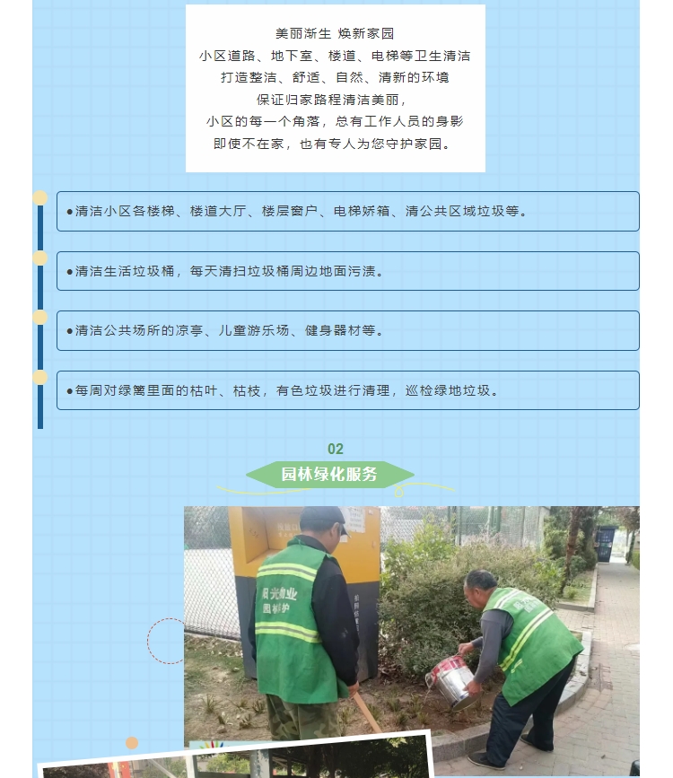 陽光物業(yè)成立于2003年5月,專注物業(yè)服務行業(yè)20余載,陽光物業(yè)現(xiàn)為河南省物業(yè)管理協(xié)會副會長單位、商丘市物業(yè)管理協(xié)會副會長單位,公司注冊資金1020萬元,陽光物業(yè)連續(xù)多年被河南省及商丘市評為先進企業(yè)、優(yōu)秀企業(yè)。
