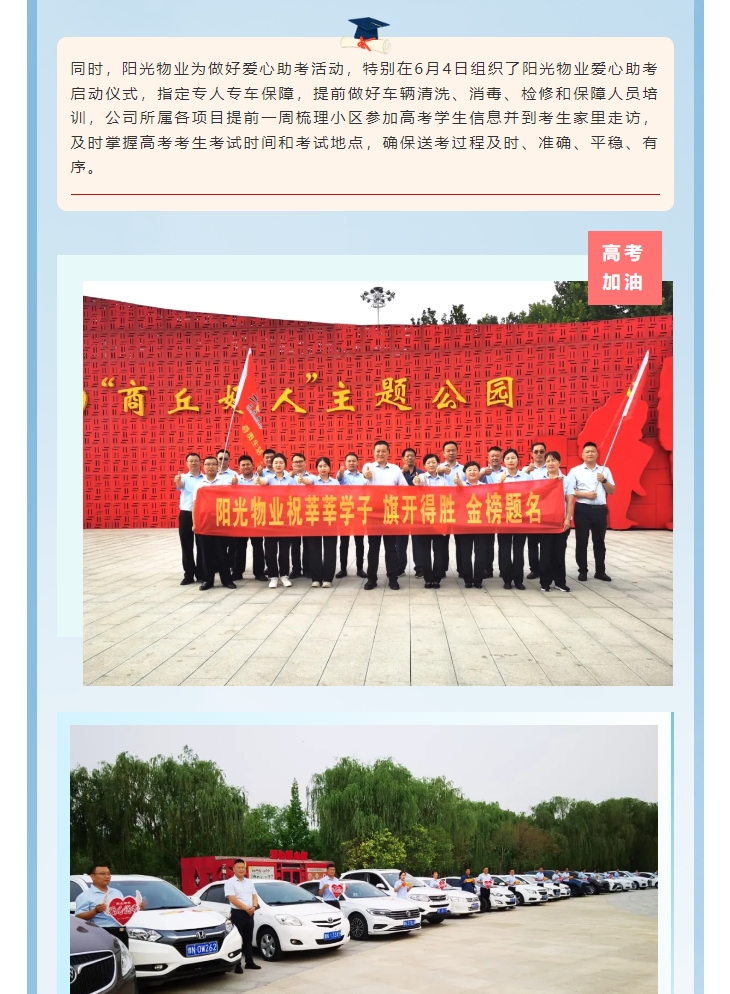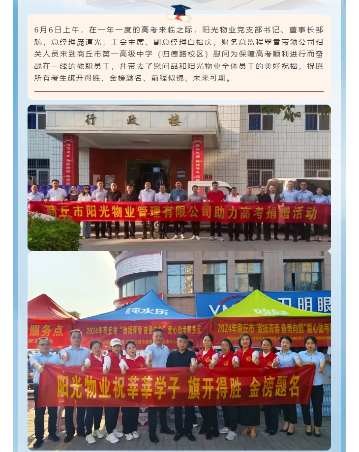 愛(ài)心助考|陽(yáng)光物業(yè)慰問(wèn)商丘市第一高級(jí)中學(xué)一線教職員工助力高考