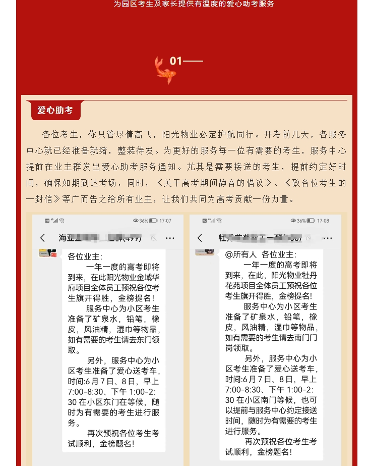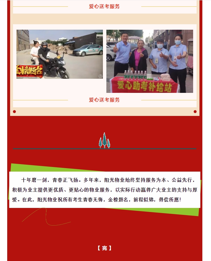 愛(ài)心助考|許你盡情高飛 陽(yáng)光物業(yè)護(hù)航同行