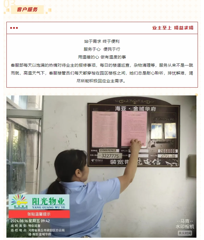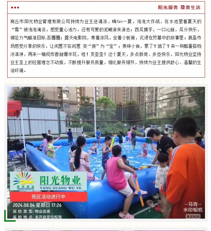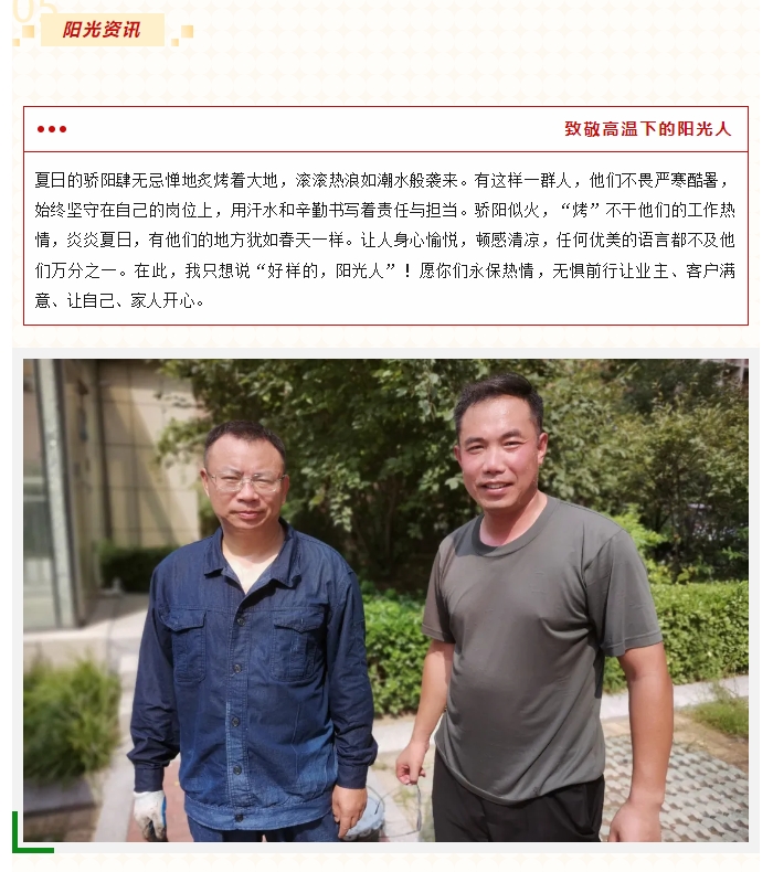 陽光物業(yè)成立于2003年5月,專注物業(yè)服務行業(yè)20余載,陽光物業(yè)現(xiàn)為河南省物業(yè)管理協(xié)會副會長單位、商丘市物業(yè)管理協(xié)會副會長單位,公司注冊資金1020萬元,陽光物業(yè)連續(xù)多年被河南省及商丘市評為先進企業(yè)、優(yōu)秀企業(yè)。