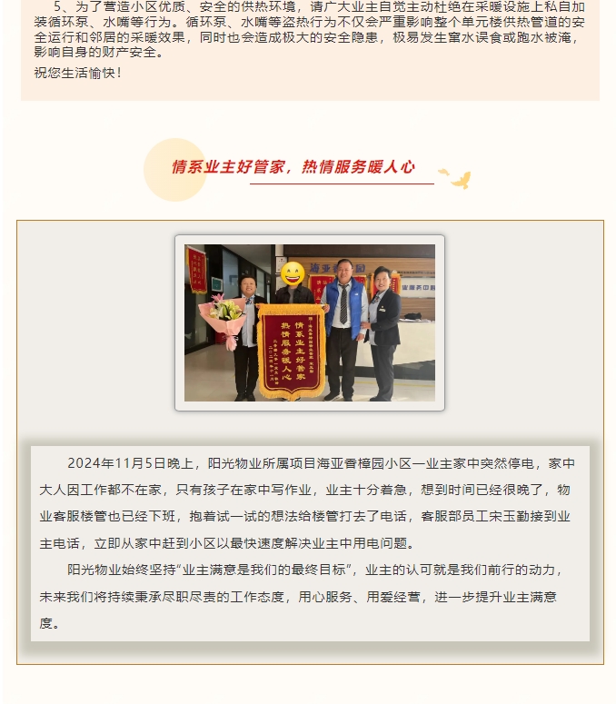陽(yáng)光服務(wù)|陽(yáng)光物業(yè)11月份服務(wù)月報(bào)