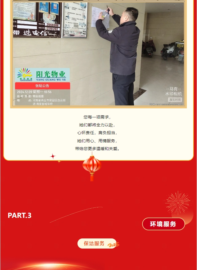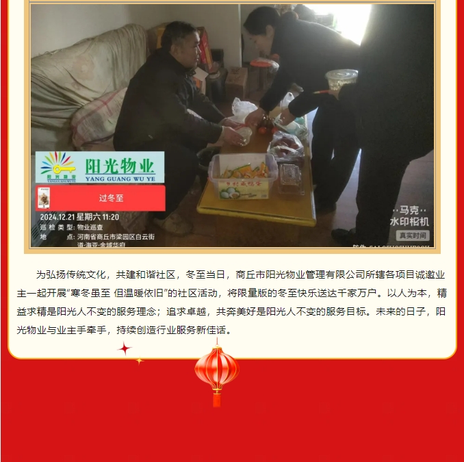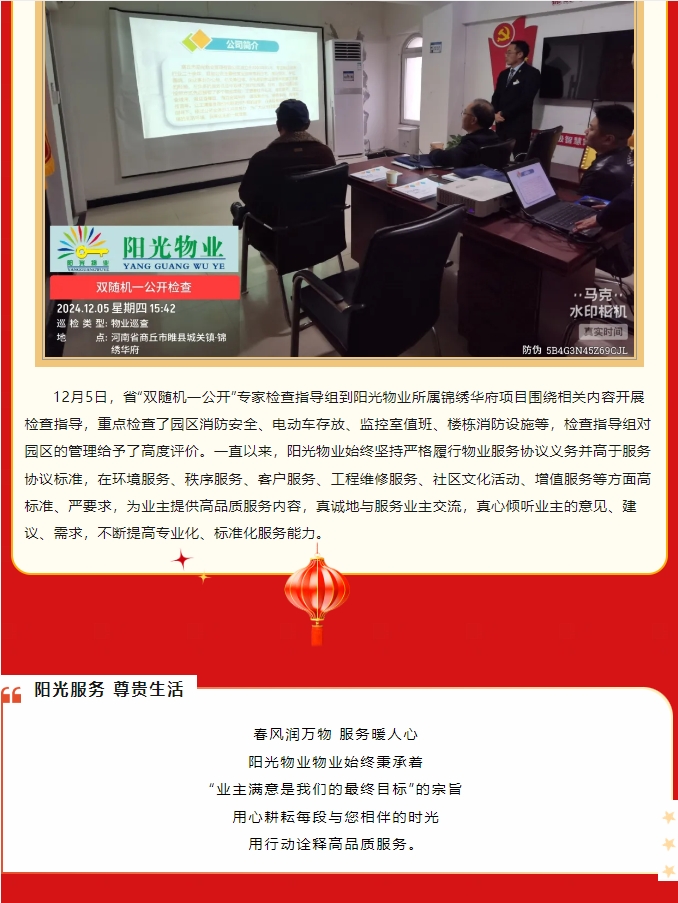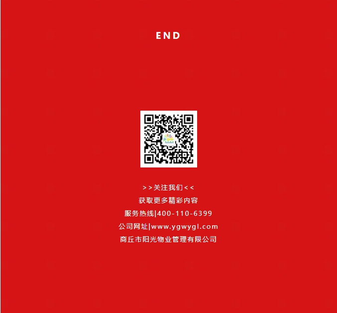 陽光物業(yè)成立于2003年5月,專注物業(yè)服務行業(yè)20余載,陽光物業(yè)現為河南省物業(yè)管理協(xié)會副會長單位、商丘市物業(yè)管理協(xié)會副會長單位,公司注冊資金1020萬元,陽光物業(yè)連續(xù)多年被河南省及商丘市評為先進企業(yè)、優(yōu)秀企業(yè)。