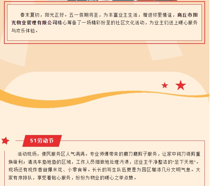 五一樂享鄰里情 陽光物業(yè)暖人心-多彩活動點亮社區(qū)生活